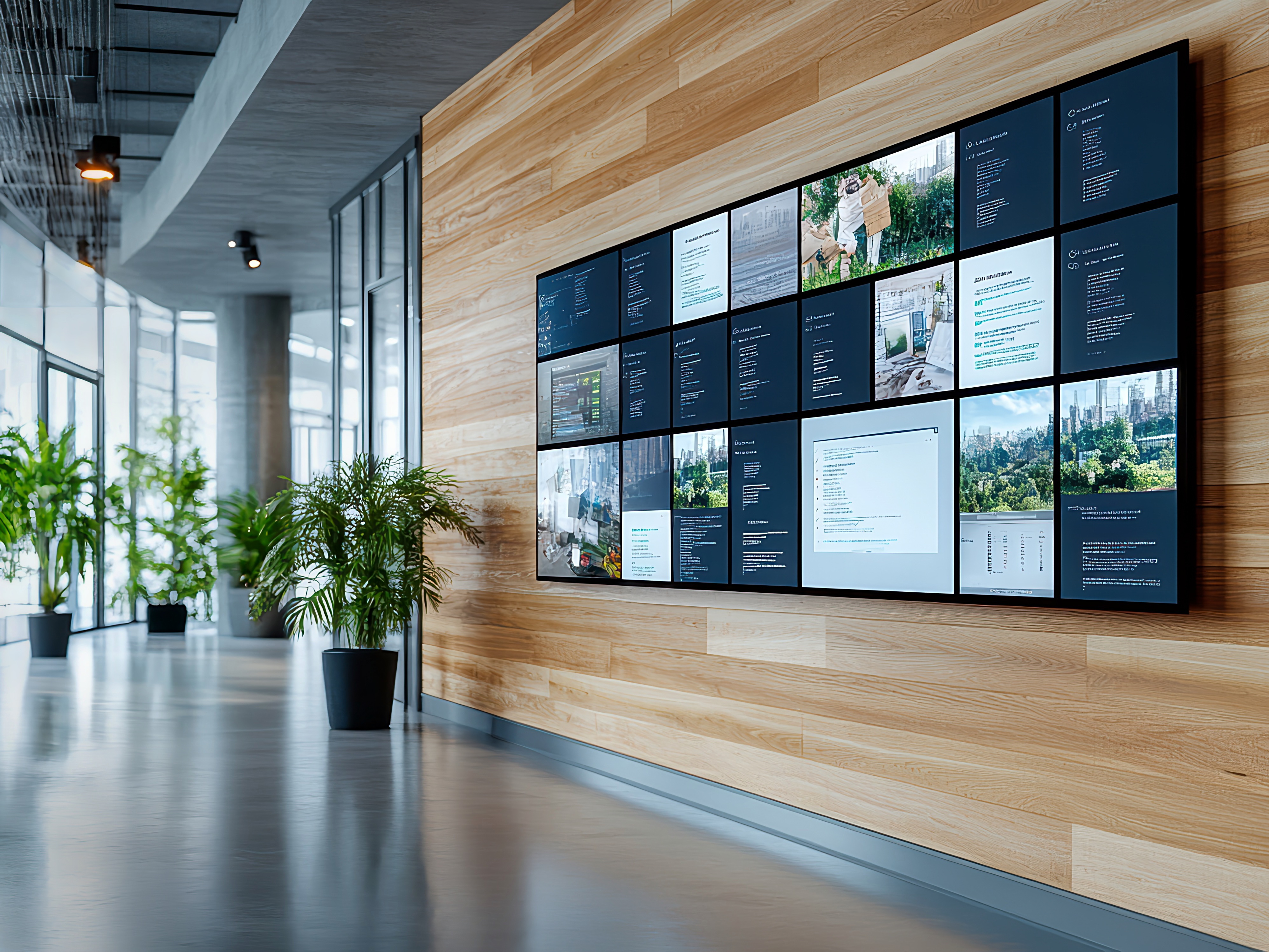 Menu boards, schedules, and dashboards powered by live feeds.